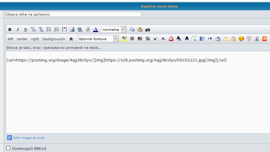 u rubrici ostaje COD sa putanjom slike.<br />molim da ne preuređujete ništa unutar uglatih zagrada jer slika se onda neće prikazati pravilno