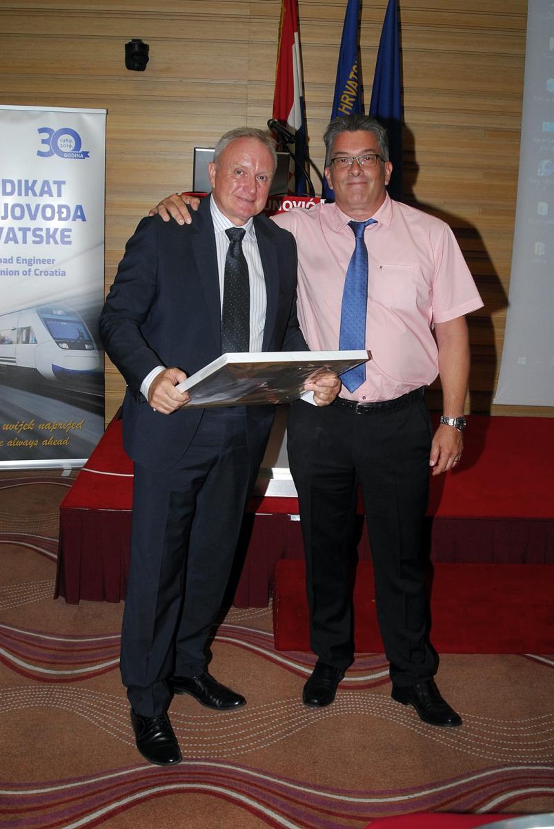 Predstavnik Sindikata pomoraca Neven Melvan kazao je kako strojovođe i pomorci djele sličnu sudbinu. Ostati će zabilježeno, kako su strojovođe prvi krenuli u sindikalnu borbu, a za njima i ostali sindikati. On je strojovođama darivao simbiličnu umjetničku sliku, luku, mjesto gdje se dotiče more i željeznica.